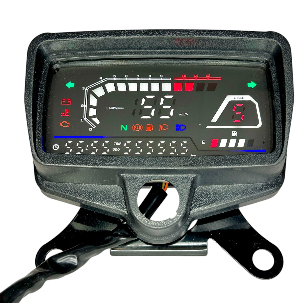 Este tablero digital para Winner CG transforma completamente el frente de tu moto. Combina velocímetro digital de alta visibilidad con tacómetro analógico LED multicolor, indicador de combustible, neutro, luz alta y direccionales en un solo módulo compacto y resistente.